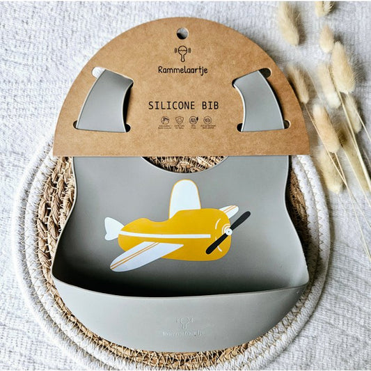 Siliconen slabber Vliegtuig salie/okergeel - Rammelaartje