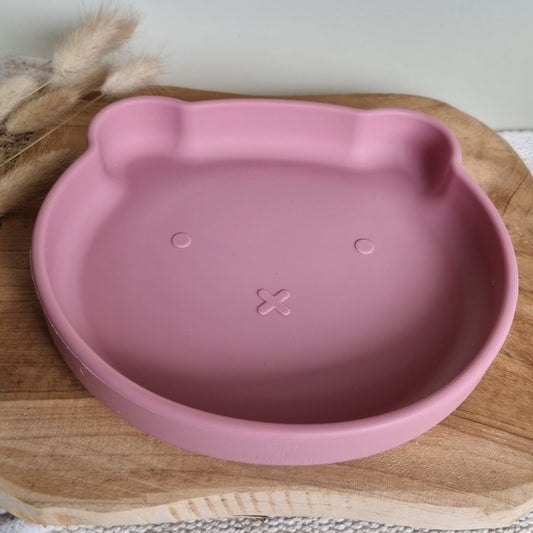 Siliconen bordje met zuignap Beer poederroze - Rammelaartje