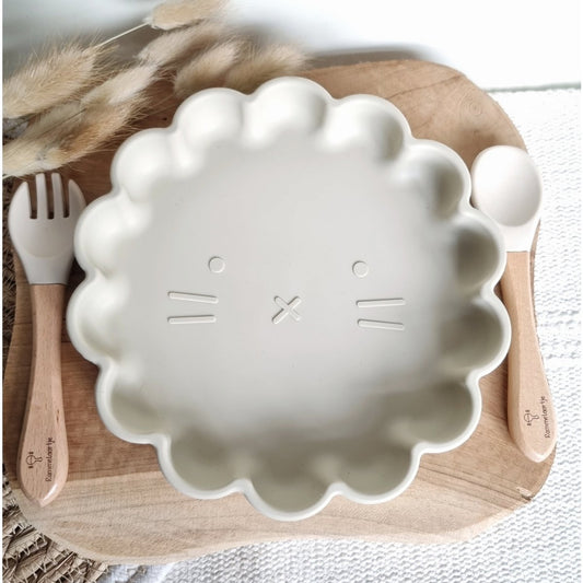 Siliconen set bordje Leeuw + vork en lepel Beige - Rammelaartje