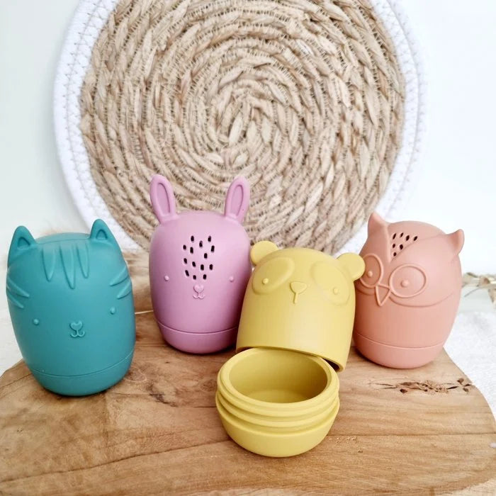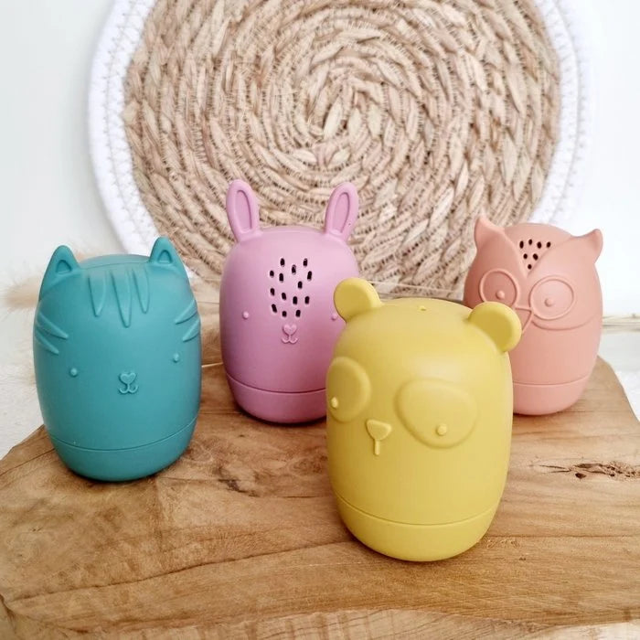 Deze superschattige badspeeltjes fungeren als gietertjes. Ze zijn gemakkelijk open te maken om ze schoon te maken, zodat er geen schimmel in de speeltjes kan komen. Ze hebben de vormen panda, tijger, konijn en uil.