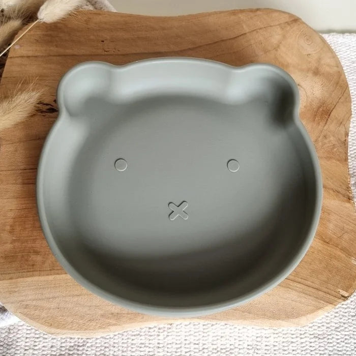 Siliconen bordje met zuignap Beer salie - Rammelaartje