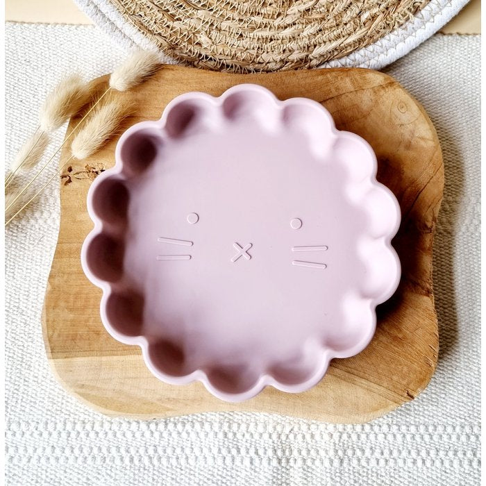 Siliconen bordje met zuignap Leeuw zachtroze - Rammelaartje