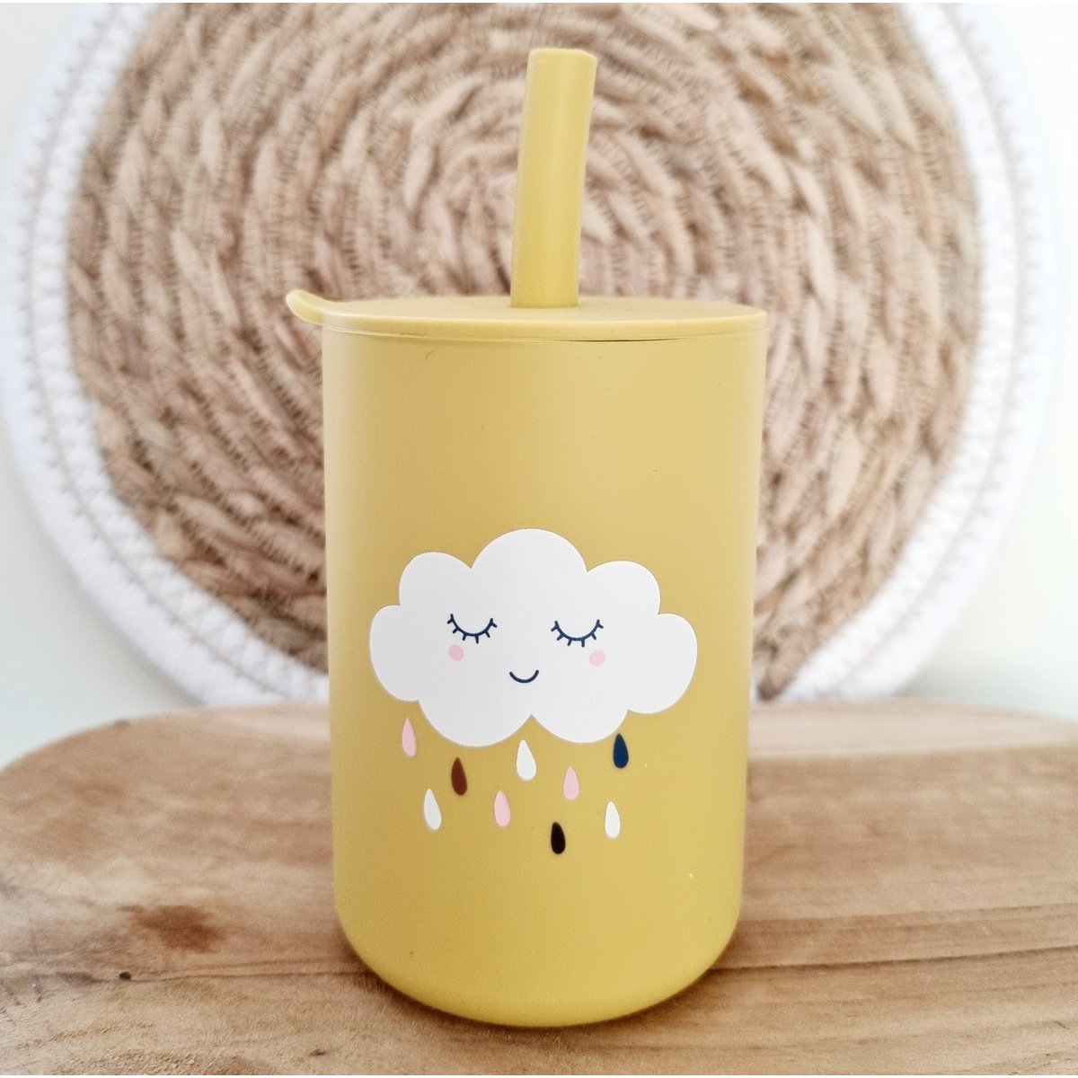 Siliconen drinkbeker met rietje Okergeel - Rammelaartje