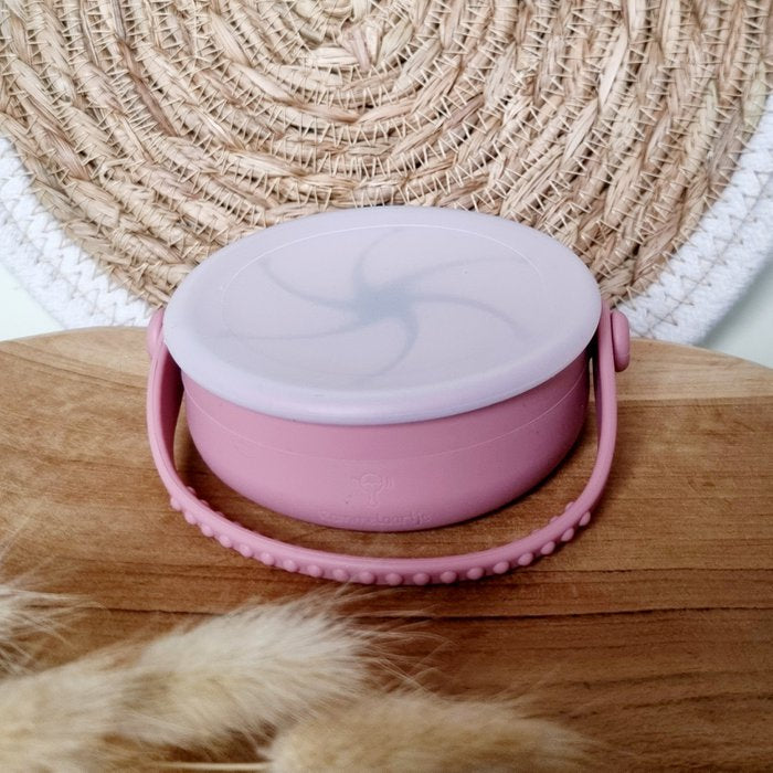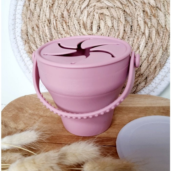 Siliconen opvouwbare snackbeker met deksel poederroze - Rammelaartje