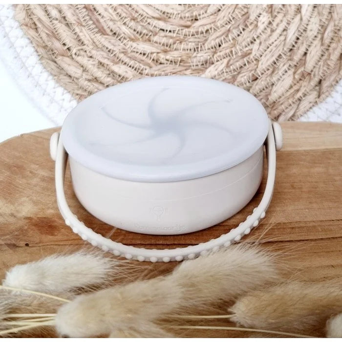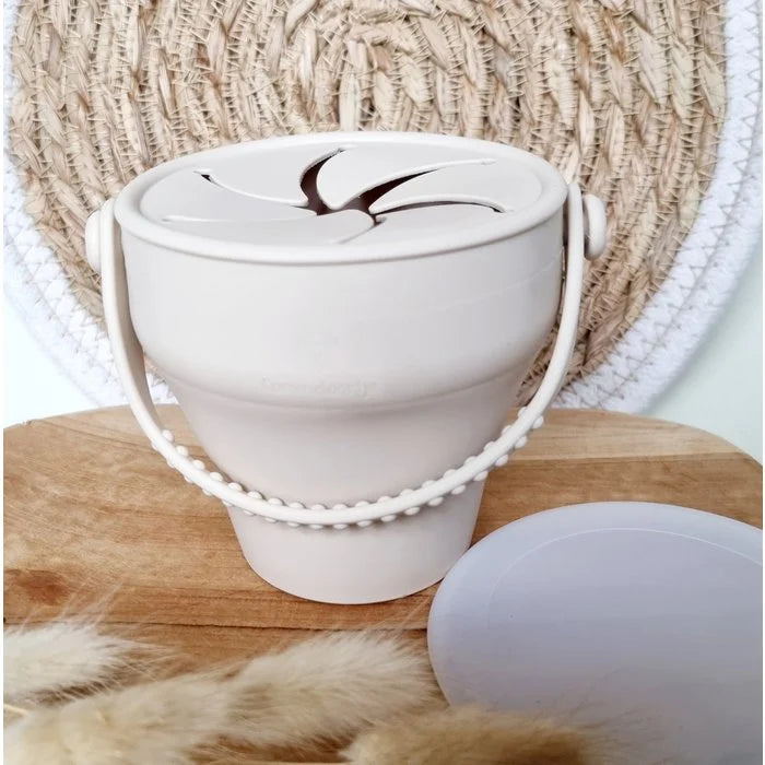 Siliconen opvouwbare snackbeker met deksel beige - Rammelaartje